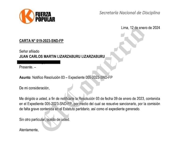 LEE TAMBIÉN: Congresista Juan Carlos Lizarzaburu presenta su renuncia irrevocable al partido Fuerza Popular y a la bancada