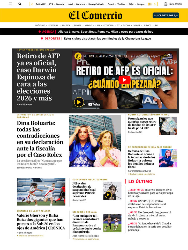 El domingo 24 de marzo, El Comercio estrenó su nuevo diseño.